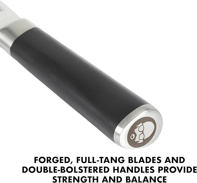 - Forged, full-tang blades and double-bolstered handles provide strength and balance
