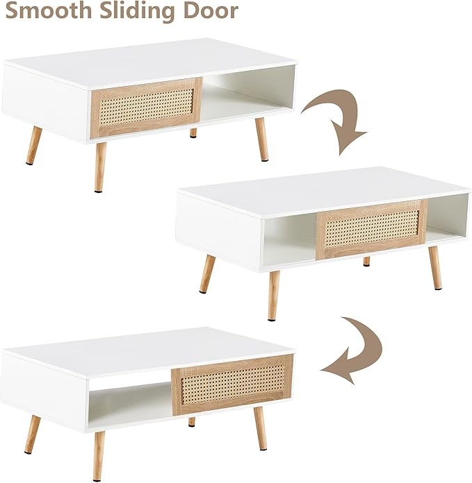 - 【Rattan Design】Our farmhouse boho coffee table with rattan door design, which matches the white surface. With a fashionable and unique appearance, the classic and simple shape of the rattan coffee table will be suitable for different styles of rooms, office, living room, guest room or bedroom as a center table, end table, or sofa table. The farmhouse boho coffee tablewill be the perfect addition to any home.