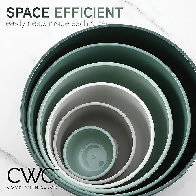 - Cook with Color 12 piece plastic mixing bowl set - non slip bowls with lids; easy to clean, sturdy mixing bowls.