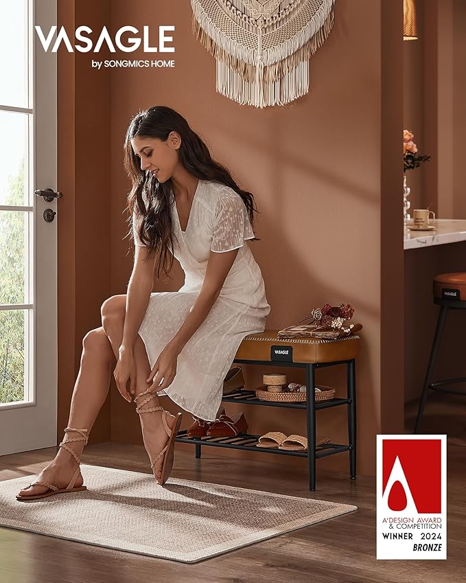 - [Style That Speaks] Recognized the Bronze A’ Design Award 2024, this shoe bench from our VASAGLE EKHO Collection blends synthetic leather with refined stitching. A tangible homage to craftsmanship, it helps craft a home that speaks volumes about style