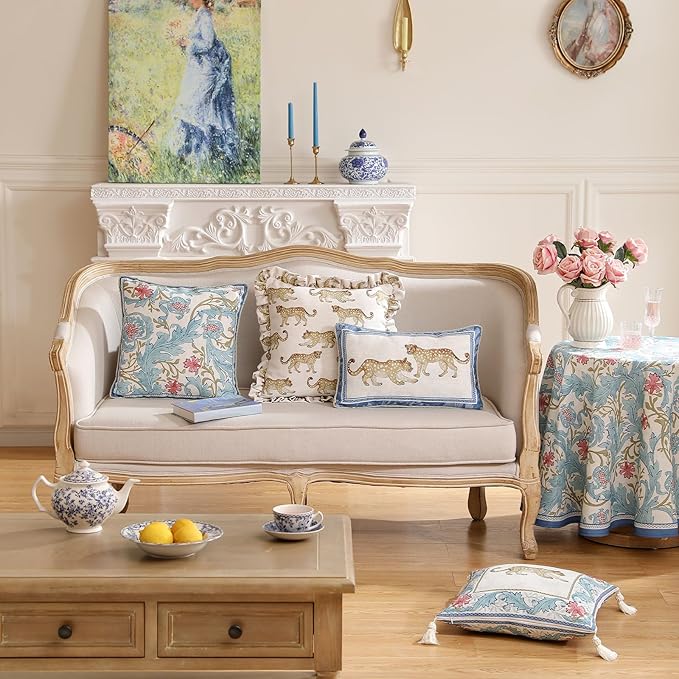 patdrea Designer Throw Pillow Covers for Couch 18"x18",Vintage Linen Pillows Cover with Cheetah Pattern and Luxury Ruffle,Farmhouse Decorative Pillowcases for Bed Living Room Outdoor Set of 2