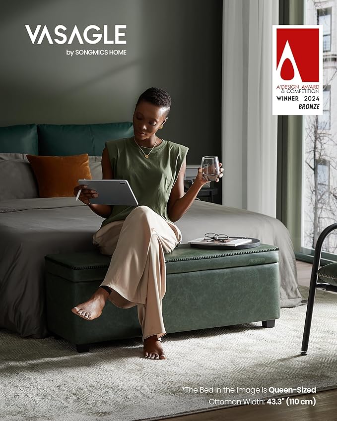 - [Style That Speaks] Recognized the Bronze A’ Design Award 2024, this storage bench from our VASAGLE EKHO Collection blends synthetic leather with refined stitching. A tangible homage to craftsmanship, it helps craft a home that speaks volumes about style