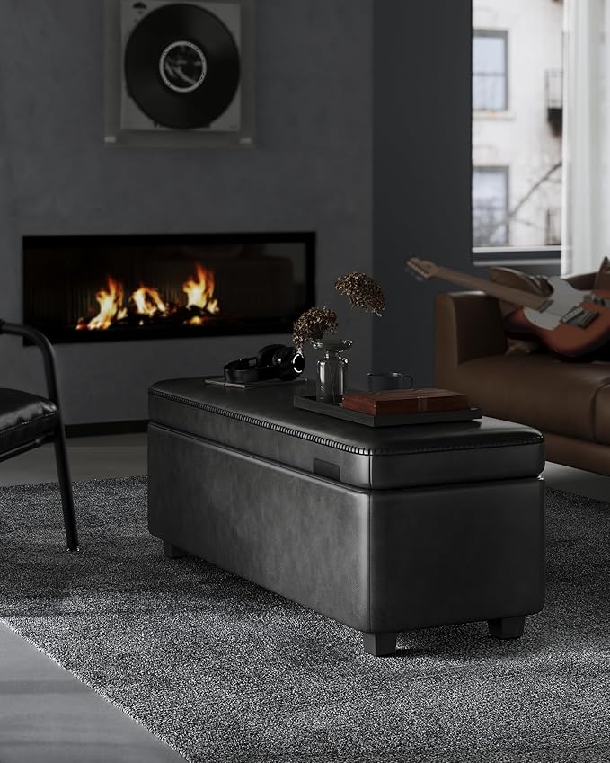 - [Comfort Meets Convenience] Glide your hand over the smooth, easy-to-clean cover, then sink into the 2.4" (6 cm) thick, supportive 25D high-resilience foam that resists deformation. This storage bench offers both a cozy seat and effortless upkeep