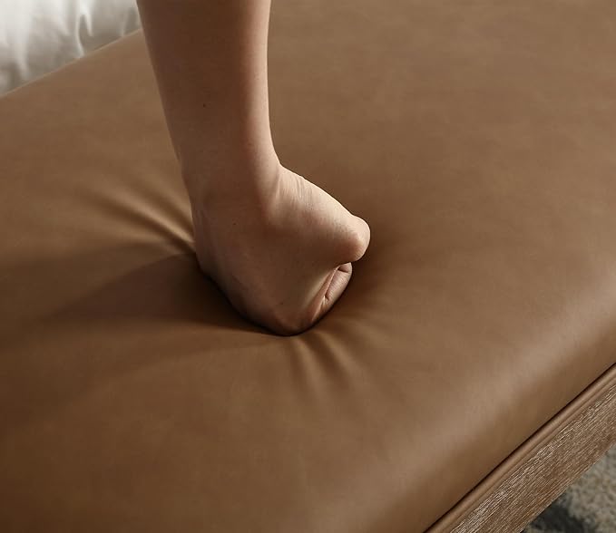 PU Leather Dining Bench Upholstered Entryway Bench Farmhouse Shoe Bench Seat Ottoman for Hallway Living Room Bedroom End of Bed Dining Room Kitchen, 45.5" Long, Brown
