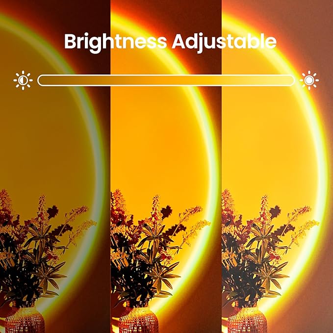 - Durable and User-Friendly: Adjusting the sunset light is a breeze – simply rotate the lamp head 360° to create aesthetic shapes on walls and ceilings. The farther you position it, the larger the projection. This lamp effortlessly sets a romantic atmosphere, making it perfect for any occasion.