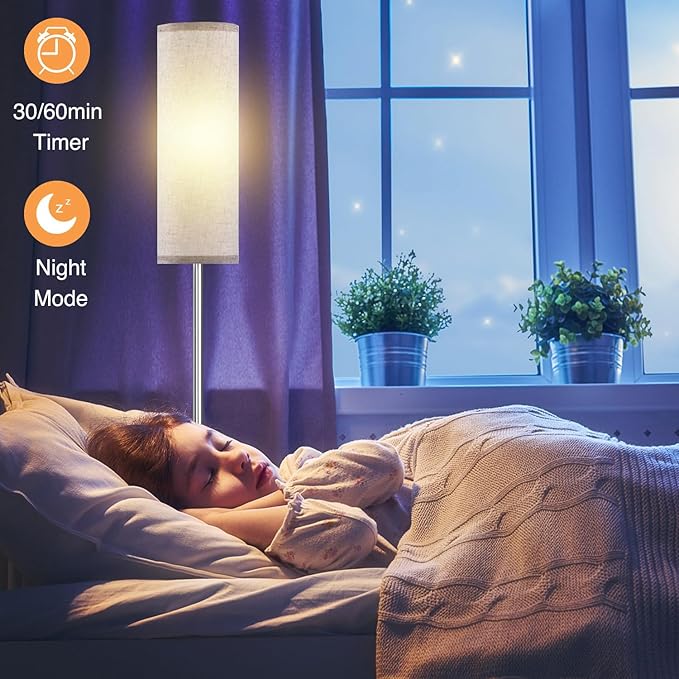 - [Modern simple floor lamp] Nickel pole and Beige linen lampshade, suitable for placing beside sofa, bed, lounge chair and desk. The heavy and sturdy chassis makes it difficult to shake and overturn. Can be paired with modern, retro, medieval, industrial and other decorative styles.