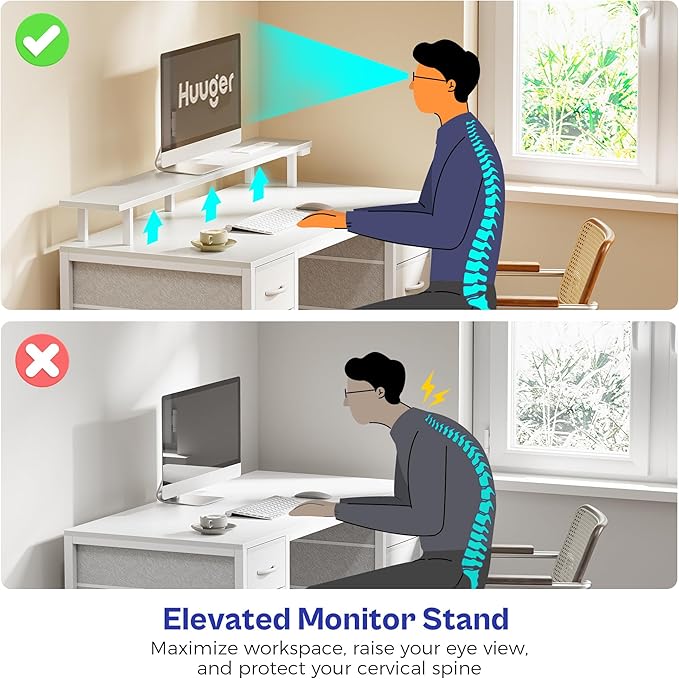 - 【Computer Desk with Shelves】- The monitor stand allows you to sit correctly while working, you can have a healthy cervical spine to stay productive while working at home.