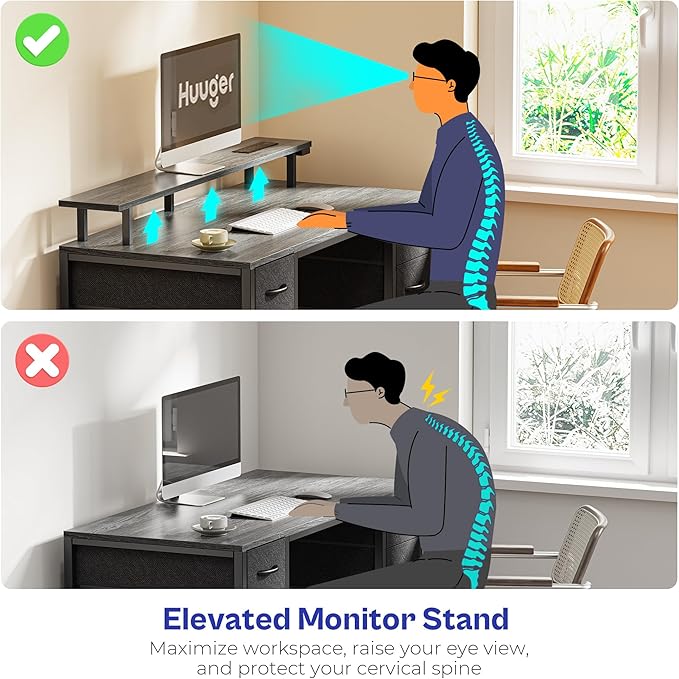 - 【Computer Desk with Shelves】- The monitor stand allows you to sit correctly while working, you can have a healthy cervical spine to stay productive while working at home.