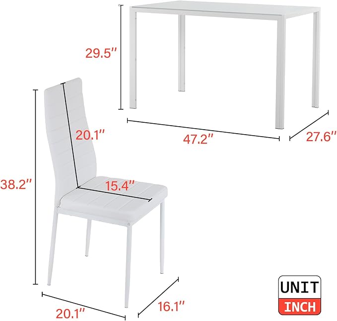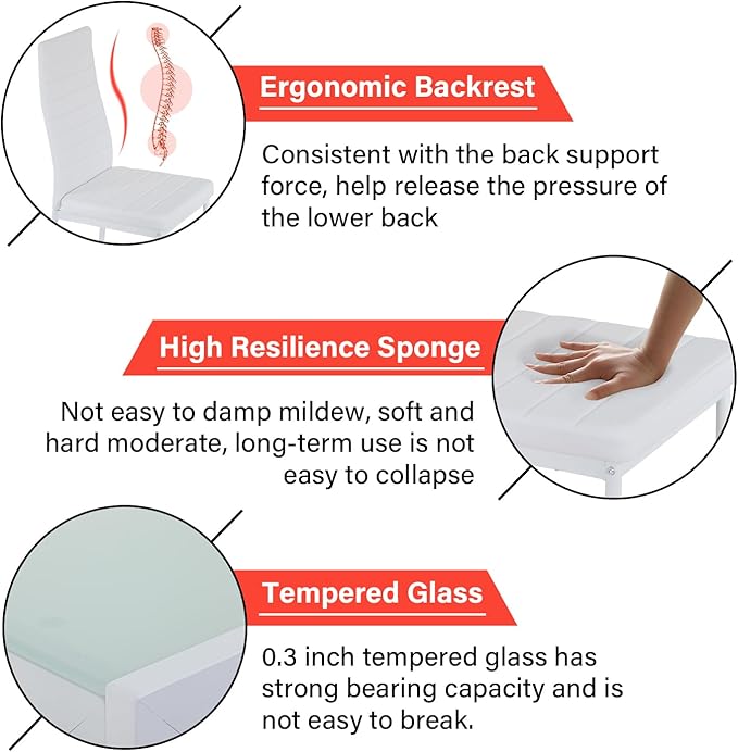 PayLessHere Dining Table Set Glass for Small Spaces Kitchen Table and Chairs for 4 Table with Chairs Home Furniture Rectangular Modern, White Glass