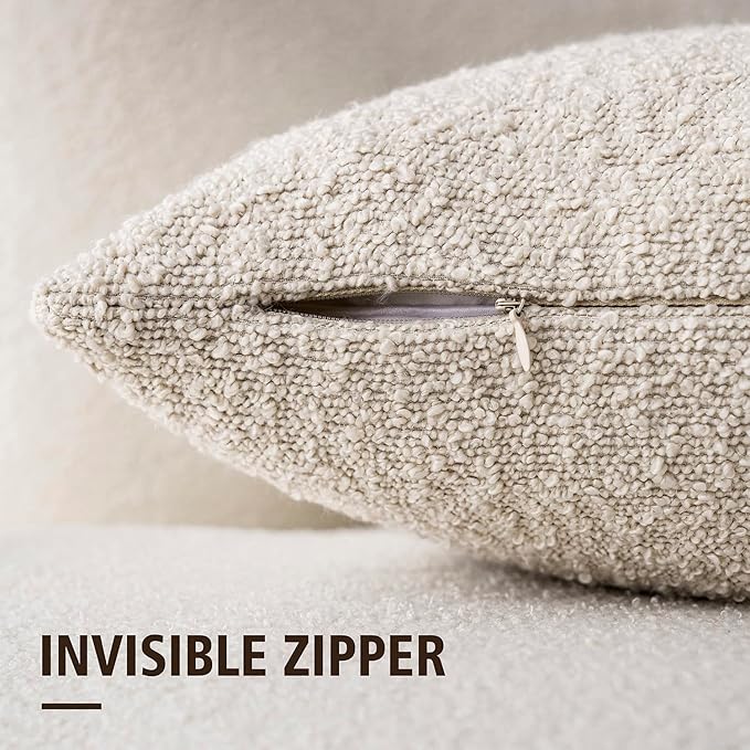 Foindtower Pack of 2, 20 x 20 Inch, Decorative Textured Boucle Throw Pillow Covers Accent Solid Pillow Cases Cozy Soft Couch Cushion Case for Chair Sofa Bedroom Living Room Home Decor, Beige