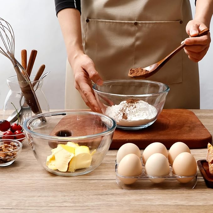 - Simple and Classic: Clear and sparkle glass bowl set display food or their contents beautifully. A brilliant presentation for even the simplest of foods. It’s easy to see the contents if using them for storage in the refrigerator. These glass prep bowls are thick and durable and designed to withstand daily use.