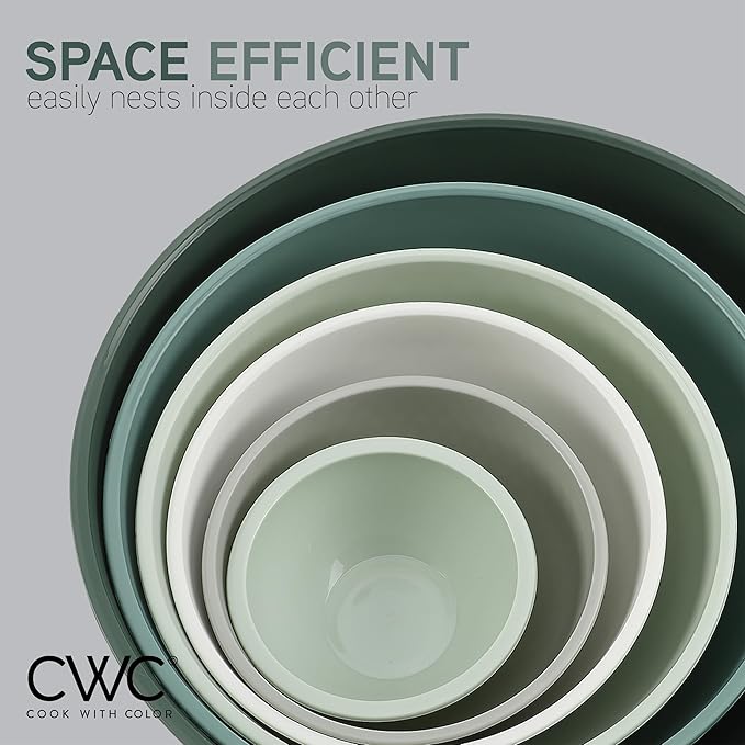 COOK WITH COLOR Mixing Bowls with Lids - 12 Piece Plastic Nesting Bowls Set includes 6 Prep Bowls and 6 Lids, Non Slip Bottom and Embossed Design - Microwave Safe (Sage)