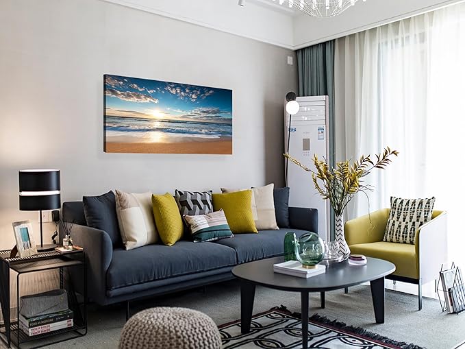 YYYYHPP YP1950 Beach Sunrise Over The Tropical Sea Pictures Print on Canvas Wall Art for Home Decor, Stretched and Framed, Easy to Hang