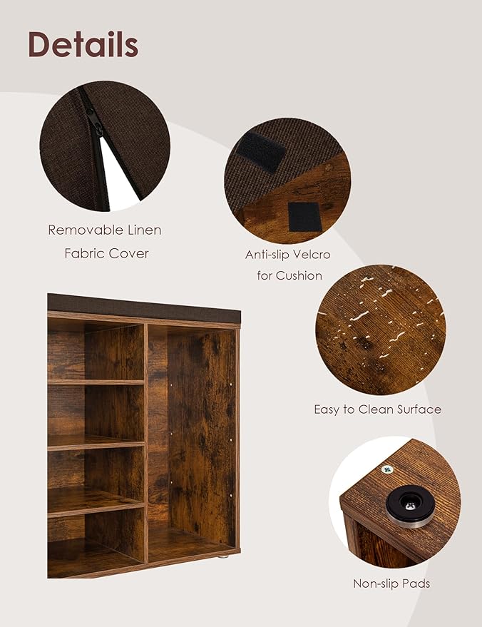 - 【Focus on Details】The sponge cushion is high resilient, soft, breathable without deformation. Zippered cotton and linen dust cover is removable and washable. Velcros secure the cushion to the mudroom bench, preventing shifting and slipping. Non-slip pads on the bottom protect your floor from scratches