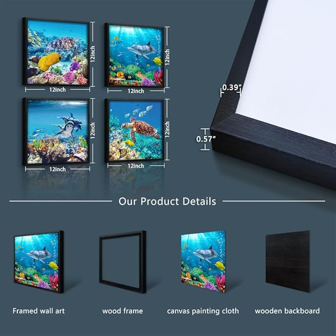 - 【FRAMED CANVAS WALL ART SIZE】Size Is :12x12inch (30x30cm)(Including The Outer Frame), total 4 Panels. Black Framed Wall Decor Art Wood Frame wall art。