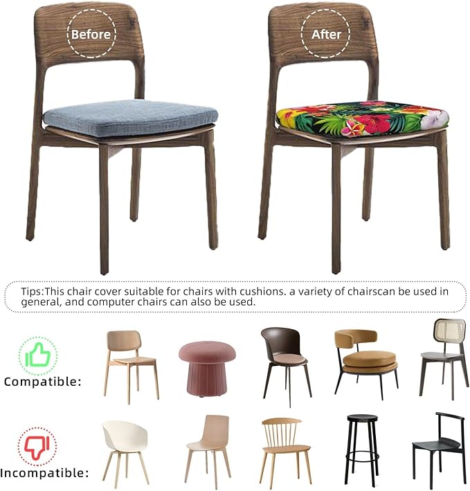 - Perfect Protector: These seat covers for dining room chairs will safeguard your chairs from dust, spills, stains, daily wear and tear, and scratches, making them an excellent choice for homes with kids and pets. These dining chair cushion slipcovers serve as practical chair seat protectors while also adding a decorative touch. You will absolutely love them.