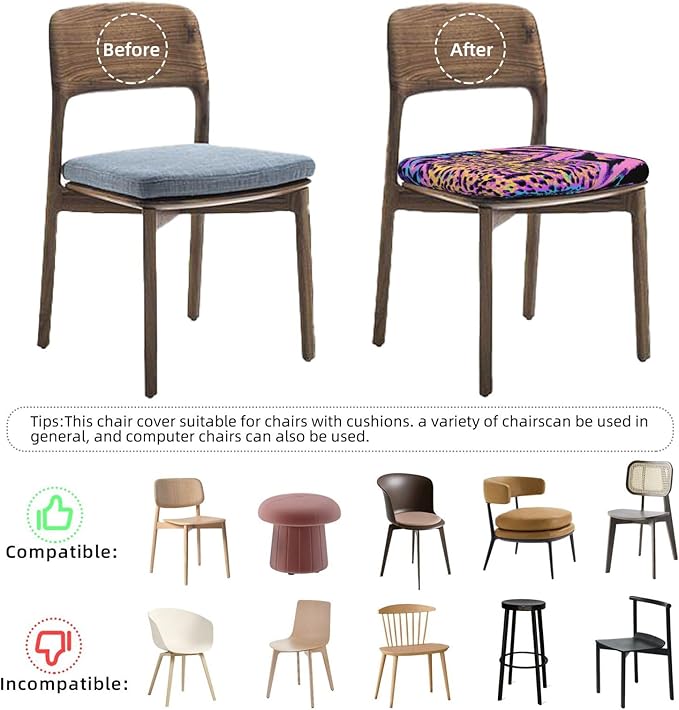 - Chair Seat Covers: Made of high-quality polyester and spandex, these chair seat covers feature a two-way stretch that snugly fits most dining chairs and office chairs. We have also included two intersecting elastic straps with buttons to ensure a tight fit of the chair covers on the seat chair cushion, firmly securing the cover in place to prevent slipping or sliding.