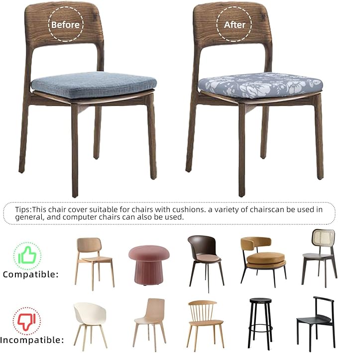 - Perfect Protector: These seat covers for dining room chairs will safeguard your chairs from dust, spills, stains, daily wear and tear, and scratches, making them an excellent choice for homes with kids and pets. These dining chair cushion slipcovers serve as practical chair seat protectors while also adding a decorative touch. You will absolutely love them.