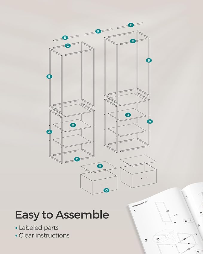 - [Easy to Assemble] With labeled parts, complete tools, and easy-to-follow instructions, assembling this closet organizer is a breeze!