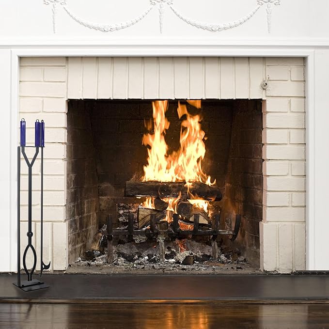 - FIREPLACE TOOLS SET STAND:The specially customized fireplace tool stand is simple and generous in design, easy to install and store. Make your home cozy and warm,creating an elegance atmosphere for your fireplaces.