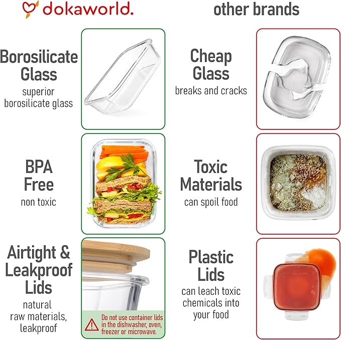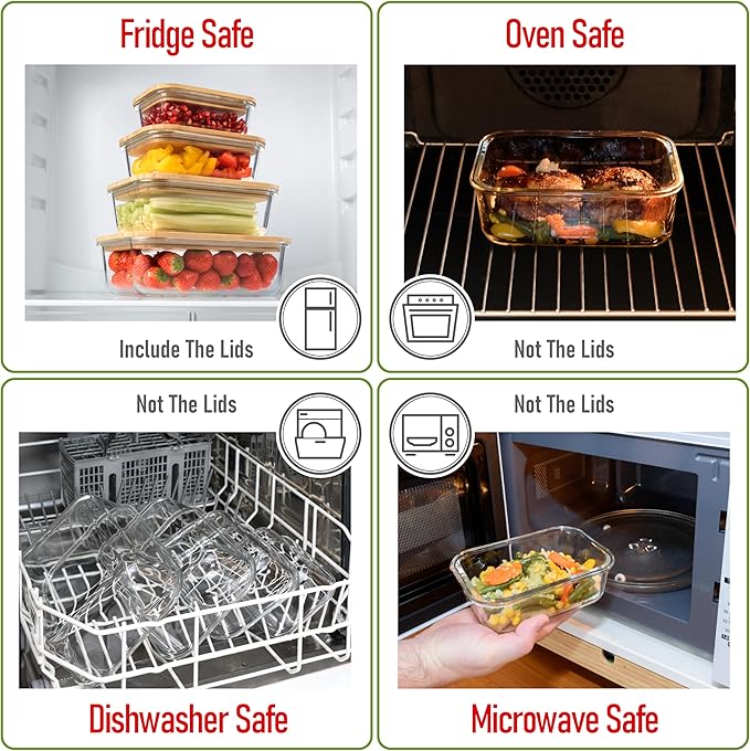 - EXTREME TEMPERATURE RESILIENCE. Our glass containers are oven- and freezer-safe thanks to their premium, high-resistant borosilicate glass. Premium quality ensures reliability in every scenario.