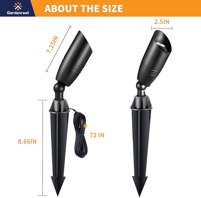- Safe and Low Maintenance - 12v low voltage landscape lighting kit is safe for children and pets, with no risk of electrocution. It also requires minimal maintenance or replacement, so you can enjoy the beauty of your outdoor lighting. Additionally, Gardenreet offers a lifetime warranty for brass spotlights and transformer. If you have any questions, please don't hesitate to contact us.
