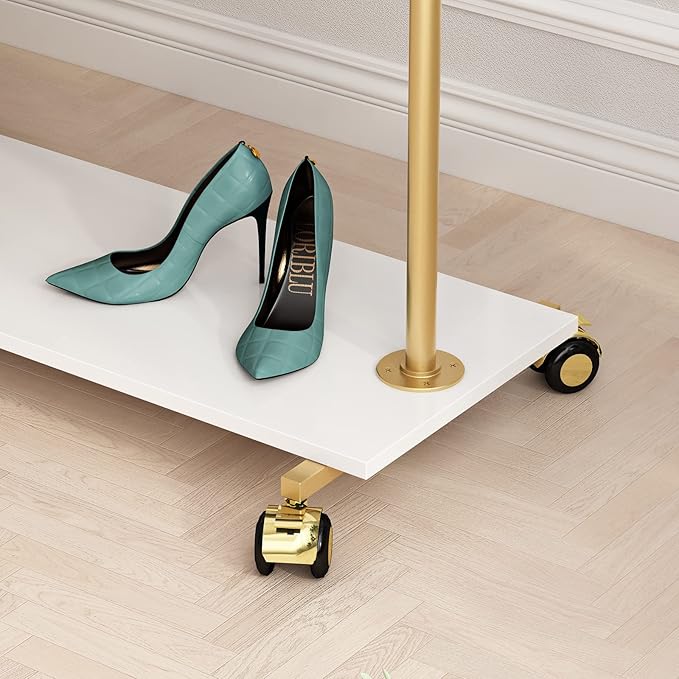- Great Storage Solution: This gold clothing rack is equipped with single bar and bottom shelf, creating plenty of space for storage your garment, shoes, handbags and boxes, making your room more neat and tidy.