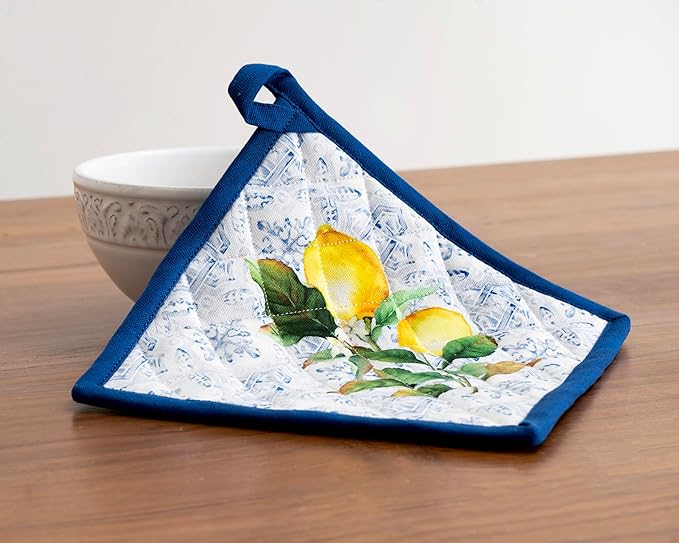 Maison d' Hermine 100% Cotton Oven Mitt & Pot Holder Set (7.5"x13" & 8"x8") Heat Resistant BBQ Cooking Gloves with Loop, Baking, Grilling, Kitchen, Handling Hot Pans Spring/Summer (Citrus)