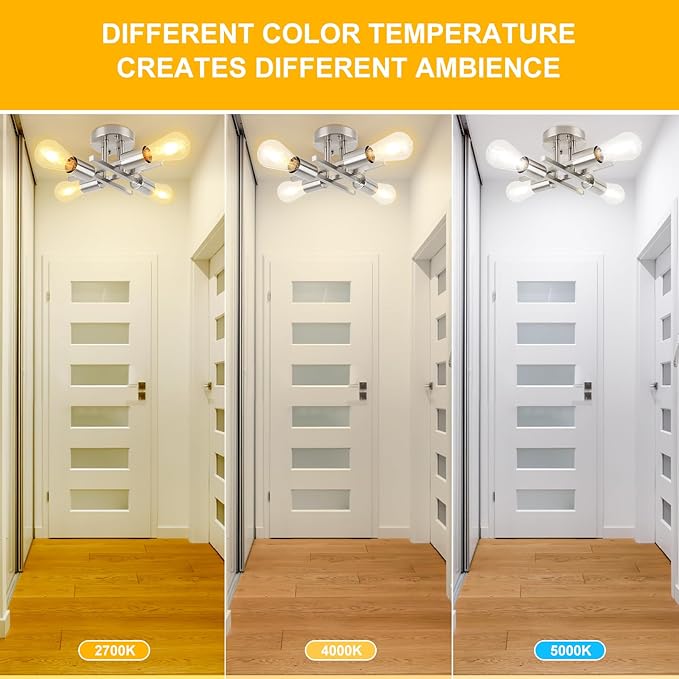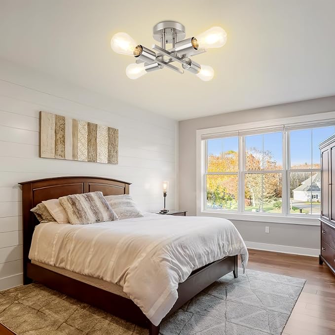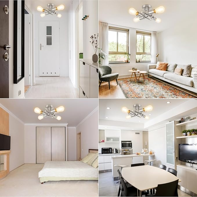- 【Ceiling Light Fixture with E26 Bulb Base】WILON semi-flush mount chandelier light has a both modern and retro look. The Sputnik ceiling light fixture has 4 standard E26 bases, compatible with LED, incandescent, or CFL bulbs (60W Max/Light, BULB NOT INCLUDED). It can match different home styles when you apply different bulbs. If dimming is required, please use dimmable bulbs and compatible dimmer switches.