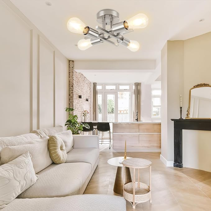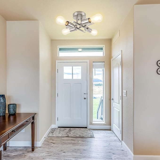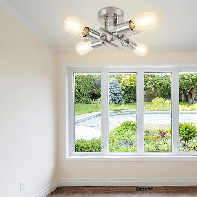 WILON Semi Flush Mount Ceiling Light Fixture, Modern Flush Mount Ceiling Lights, 4-Light Brushed Nickel Sputnik Ceiling Light Fixture with E26 Bulb Base for Hallway Farmhouse Kitchen Bedroom