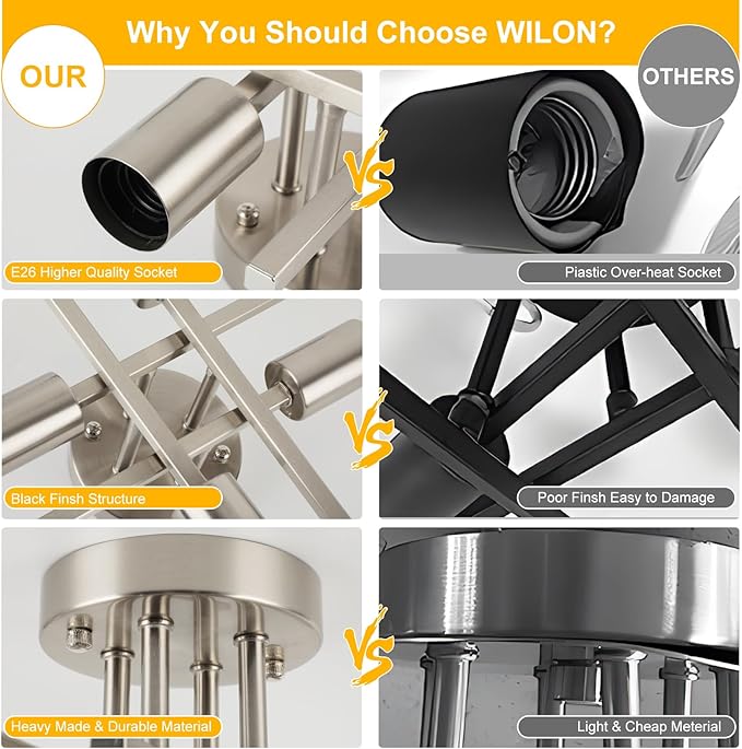 - 【Premium Material】WILON flush mount ceiling lights are made of premium anti-oxidant, non-fading finish metal making them light thick, solid, sturdy, and durable for long-term use, with no replacement hassle, and super easy for you to clean up. Please note this ceiling light is a 4-light large light fixture, please choose the size you need!