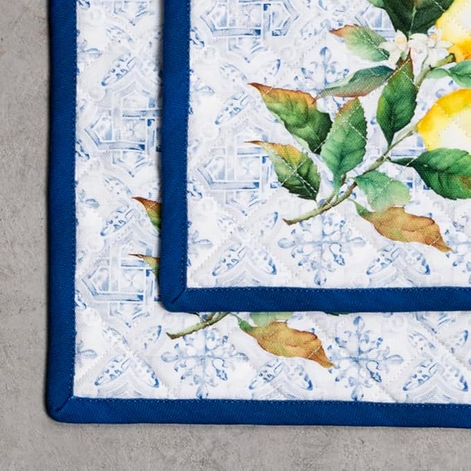 Maison d' Hermine Pot Holders Set 100% Cotton Heat Resistant Potholders 8" x 8" Hot Pads with Loop BBQ, Cooking, Baking, Grilling, Kitchen, Handling Hot Pans Spring/Summer (Pack of 2, Citrus)