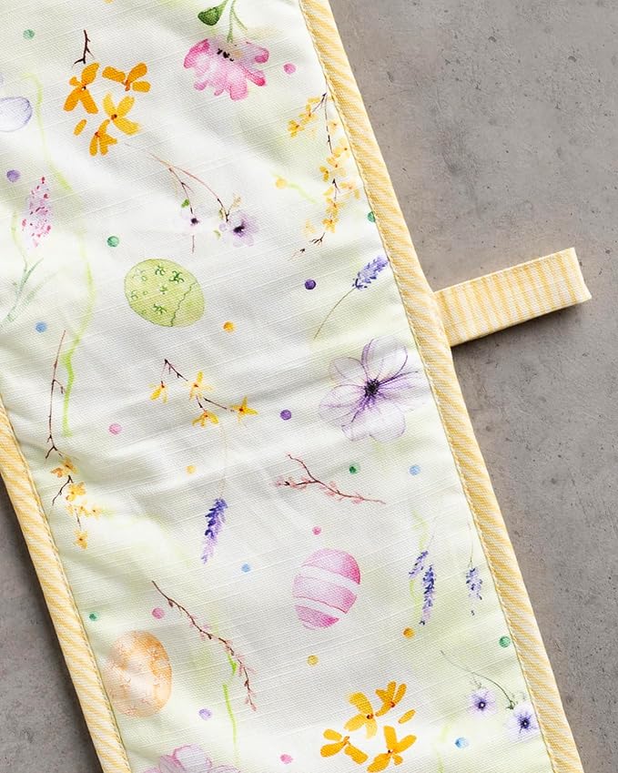 Maison d' Hermine Double Oven Mitts 100% Cotton 7"x35" Double Oven Mitt Heat Resistant BBQ Cooking Gloves with Loop, Baking, Grilling, Home, Kitchen, Handling Hot Pans Spring Summer (Easter Zest)