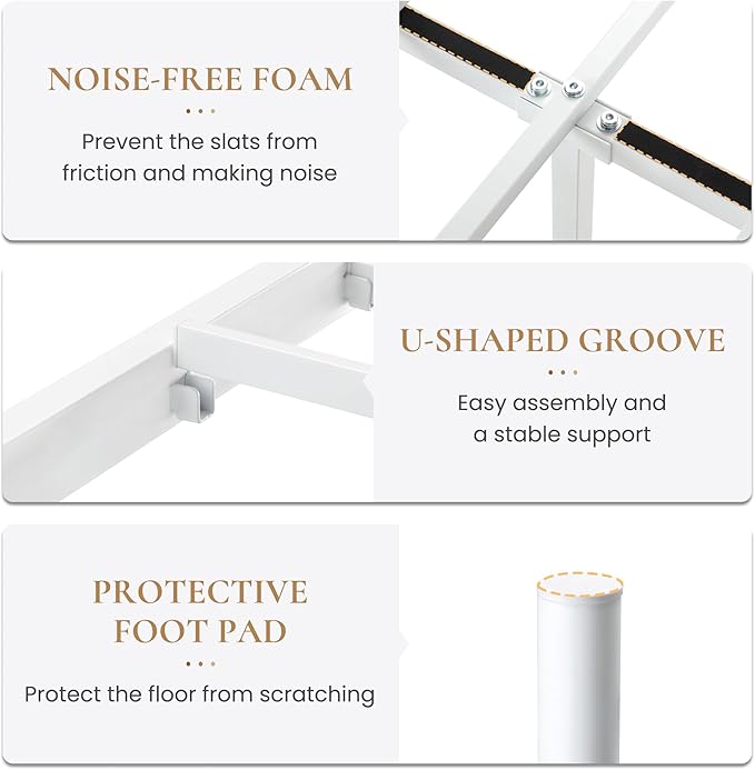 - Raised Design: The metal bed frames have an H-shaped headboard and footboard, minimizing sliding or shifting during use and enhancing comfort and stability while sleeping or sitting on the bed