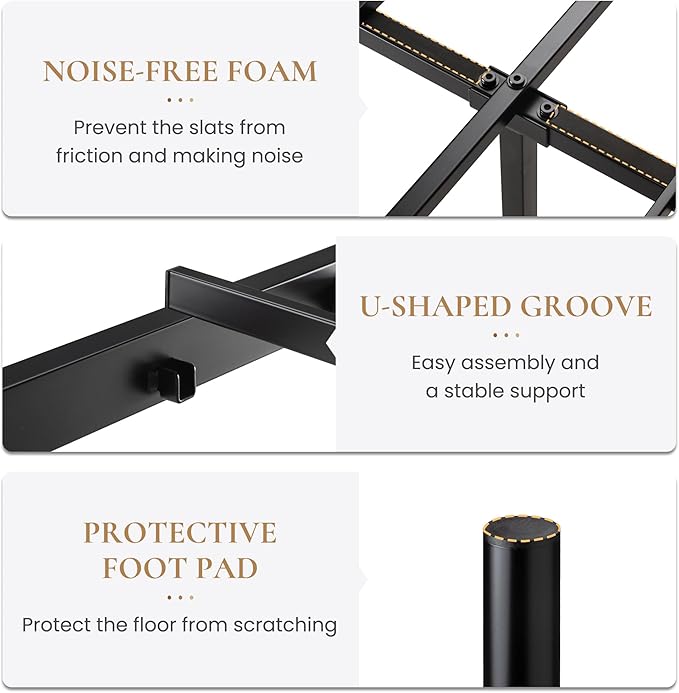- Raised Design: The metal bed frames have an H-shaped headboard and footboard, minimizing sliding or shifting during use and enhancing comfort and stability while sleeping or sitting on the bed
