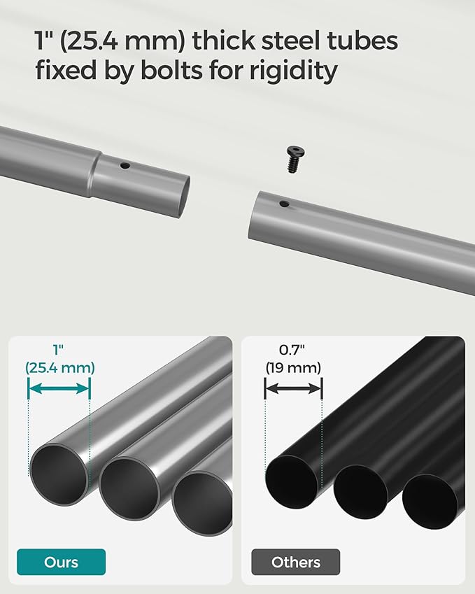 - [Sturdy and Durable] 25.4 mm dia. steel tubes connected by screws make each top rail that holds up to 77 lb and gives your heavy clothes stable support for years to come