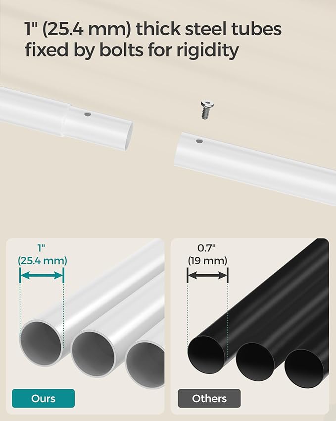 - [Sturdy and Durable] 25.4 mm dia. steel tubes connected by screws make each top rail that holds up to 77 lb and gives your heavy clothes stable support for years to come
