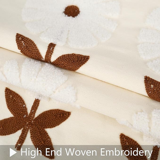Merrycolor Boho Decorative Throw Pillow Covers 18x18 Embroidered Brown Flower Pillow Covers Textured Square Cushion Case Farmhouse Pillow Covers for Couch Bed,1PC, Beige