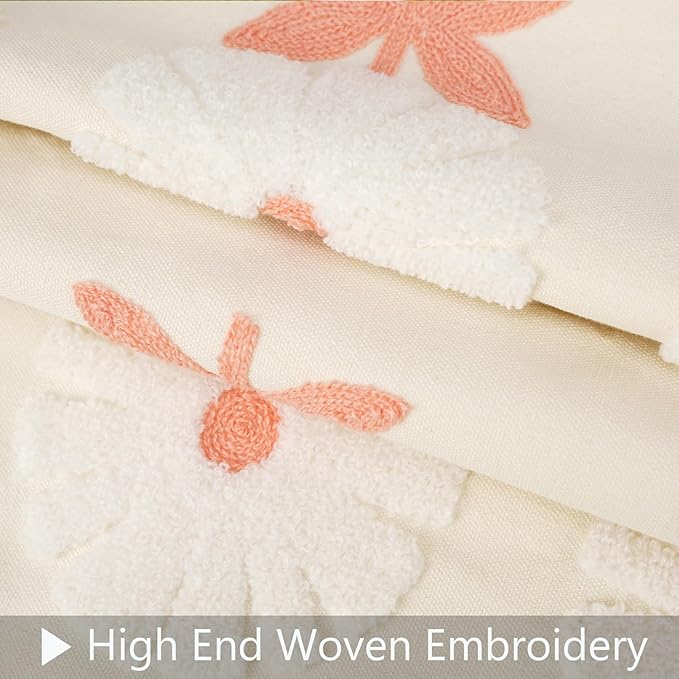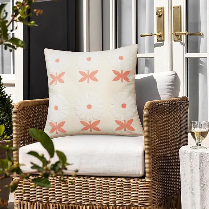 - 【Unique design】 The front of this flower throw pillow cover is made of natural cotton and acrylic high end woven embroidery, the backside is made of 100% cotton. The 3D effect with the tufting technic makes these pillow covers so distinctive.