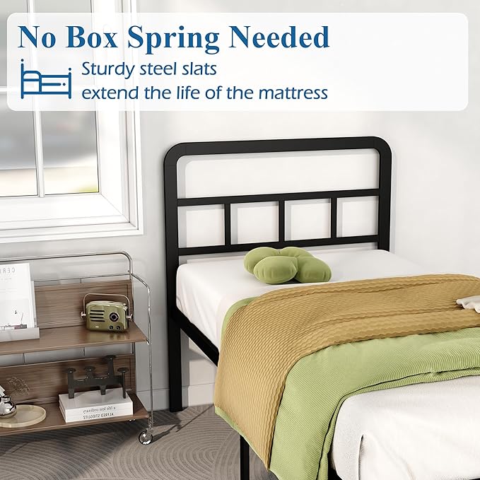 - No Box Spring Needed: Sturdy steel slats extend the life of the mattress. You can put latex, memory foam or innerspring mattress directly on it without box spring. Twin xl platform bed frame is suitable for 80x38 inches mattress.