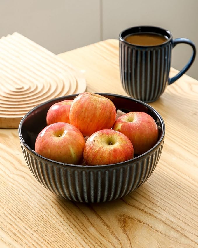 - Unique Ribbed Design: These salad bowls feature exquisite vertical stripes for a stylish and elegant look. The embossed texture provides a firm grip and comfortable hand feel, enhancing your dining experience