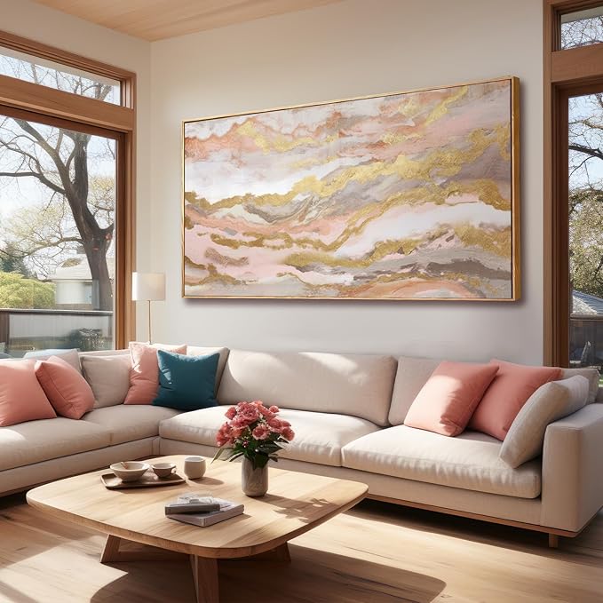 Abstract Pink Canvas Wall Art Framed Gold Abstract Line Artwork for Living Room Decor Canvas Art Bedroom Pictures Office Decoration for Wall 30x60in