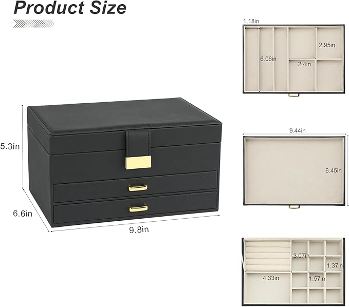 - FUNCTIONAL AREA DIVISION: Reasonable functional area division increases the practicality of the jewelry storage box. The jewelry case is divided into three layers from top to bottom, which are a small jewelry storage area, a necklace storage area, and a multi-purpose layer. Meet your multiple acceptance needs at once.