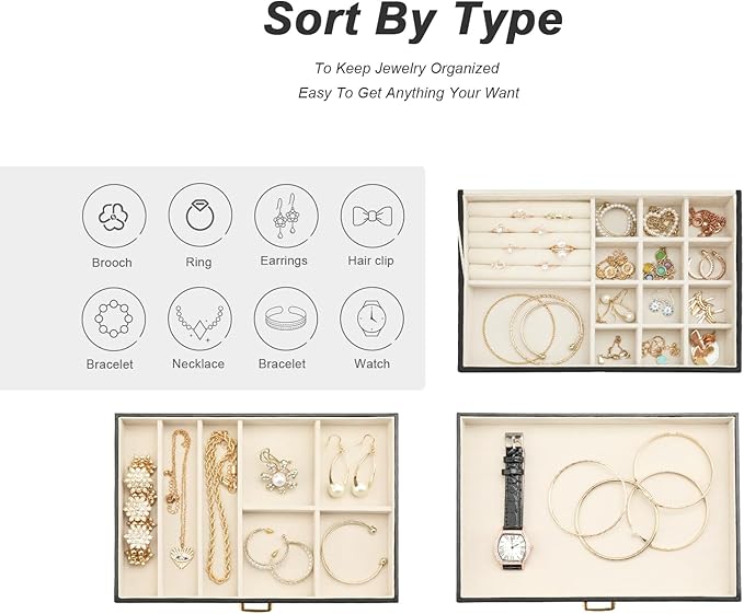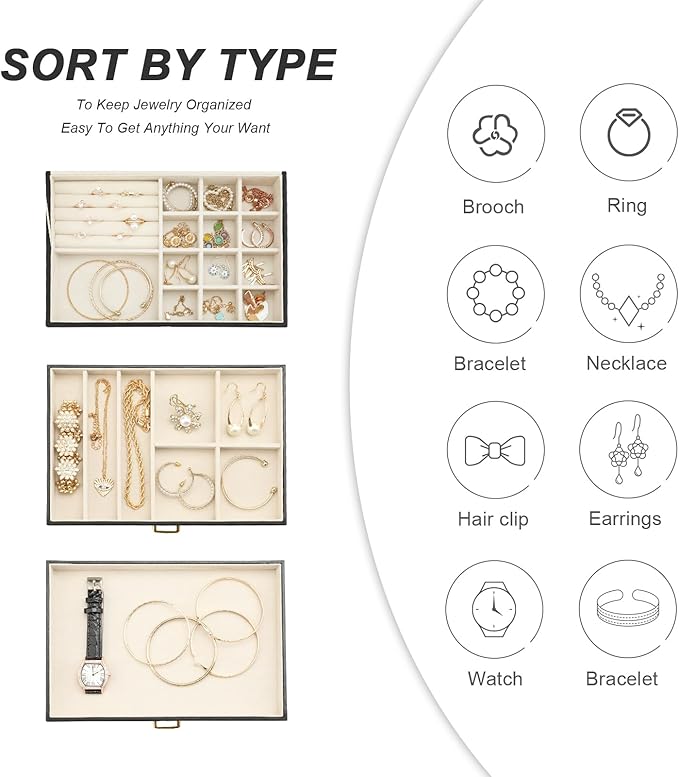 - LARGE CAPACITY - The jewelry box has sufficient capacity to accommodate most jewelry and most models of watches. Jewelry organizers can protect your jewelry and keep it organized.