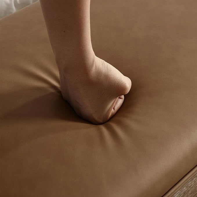 Upholstered Entryway Bench Farmhouse Shoe Benches for Hallway Porch Bedroom Bench for End of Bed Dining Bench for Dining Table Dining Room Kitchen Window with Wood Legs, PU Leather, Brown