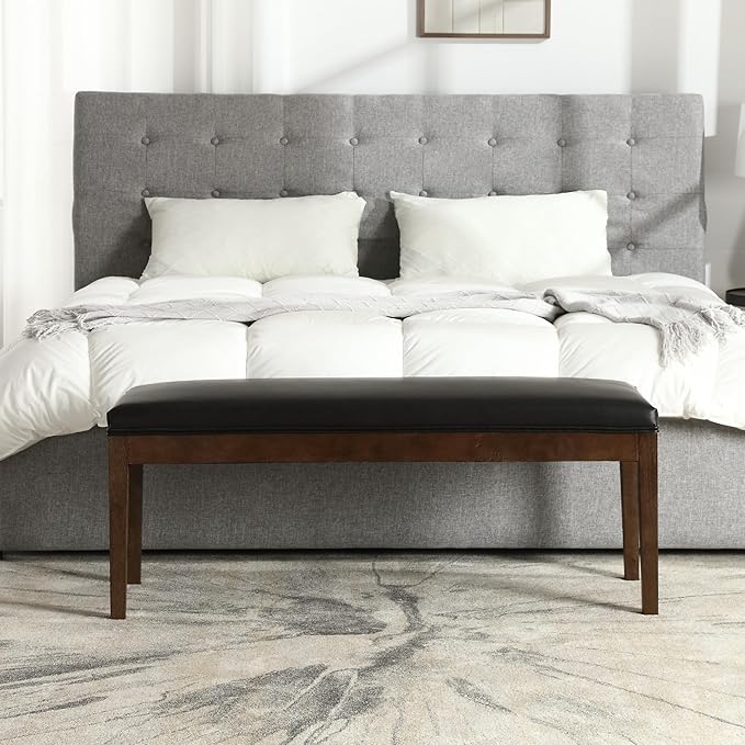 Upholstered Entryway Bench Modern Shoe Benches for Hallway Porch Bedroom Bench for End of Bed Dining Bench for Dining Table Dining Room Kitchen Window with Wood Legs, PU Leather, Black