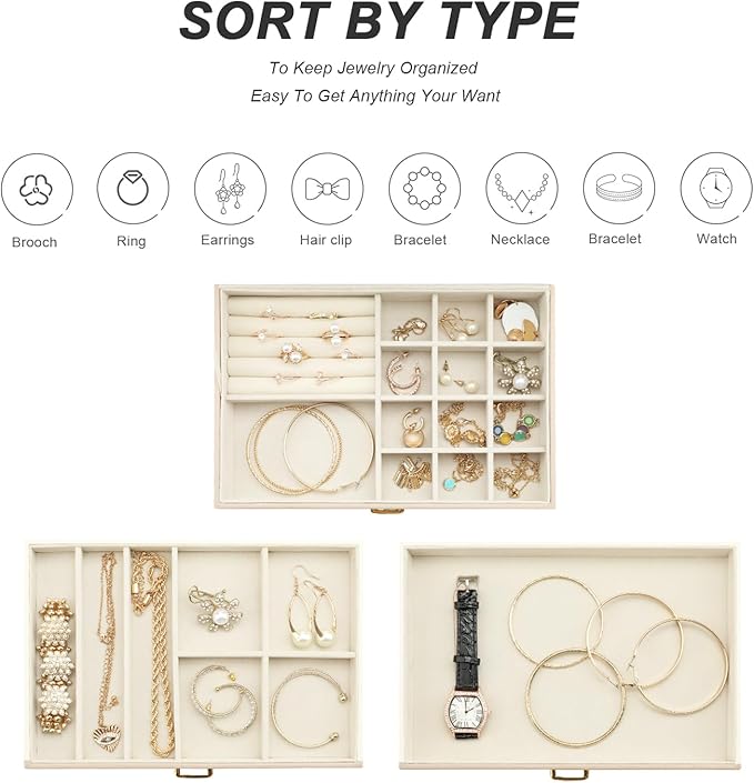 Jewelry Box, 3-Tier with 2 Drawers, Beige, Modern, Women's Jewelry Organizer