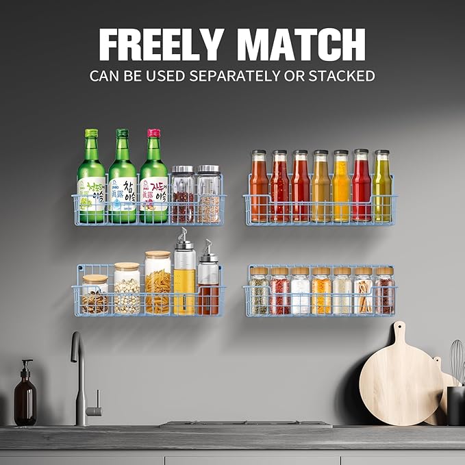 - Simple and Practical Design: Spice rackβs simple and applicable design style can perfectly match any scene, an elegant light blue wall spice rack will make you never tire of seeing it, bringing convenience and adding beauty to your home life.