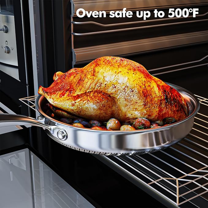 - All Hobs & Oven Safe & Dishwasher Safe: Tri-Ply structure for fast heat conduction and even heating, making it suitable for use on any type of hob, including induction, gas, halogen and electric. Oven safe up to 480℉/250°C (Safe to 210°F/100°C with Glass Lid). Enjoy easy cleaning with the Dishwasher Safe Kitchen Cookware Set!