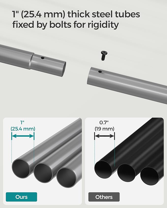 - [Sturdy and Durable] 25.4 mm dia. steel tubes connected by screws make the top rail that holds up to 88 lb and gives your heavy clothes stable support for years to come